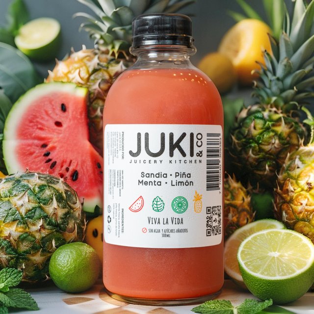 Comtiene: Sandia, piña, menta y limon prensados en frio.